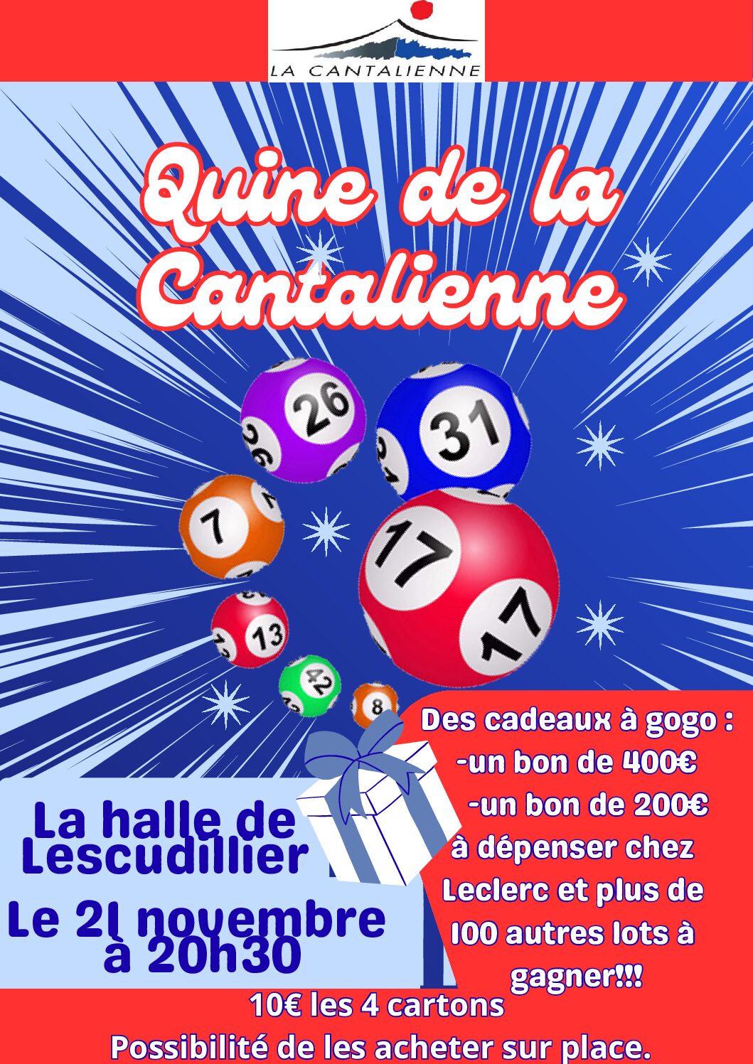 – Vendredi 21 novembre 2025 : Quine de la Cantalienne – Halle de Lescudilliers, Aurillac